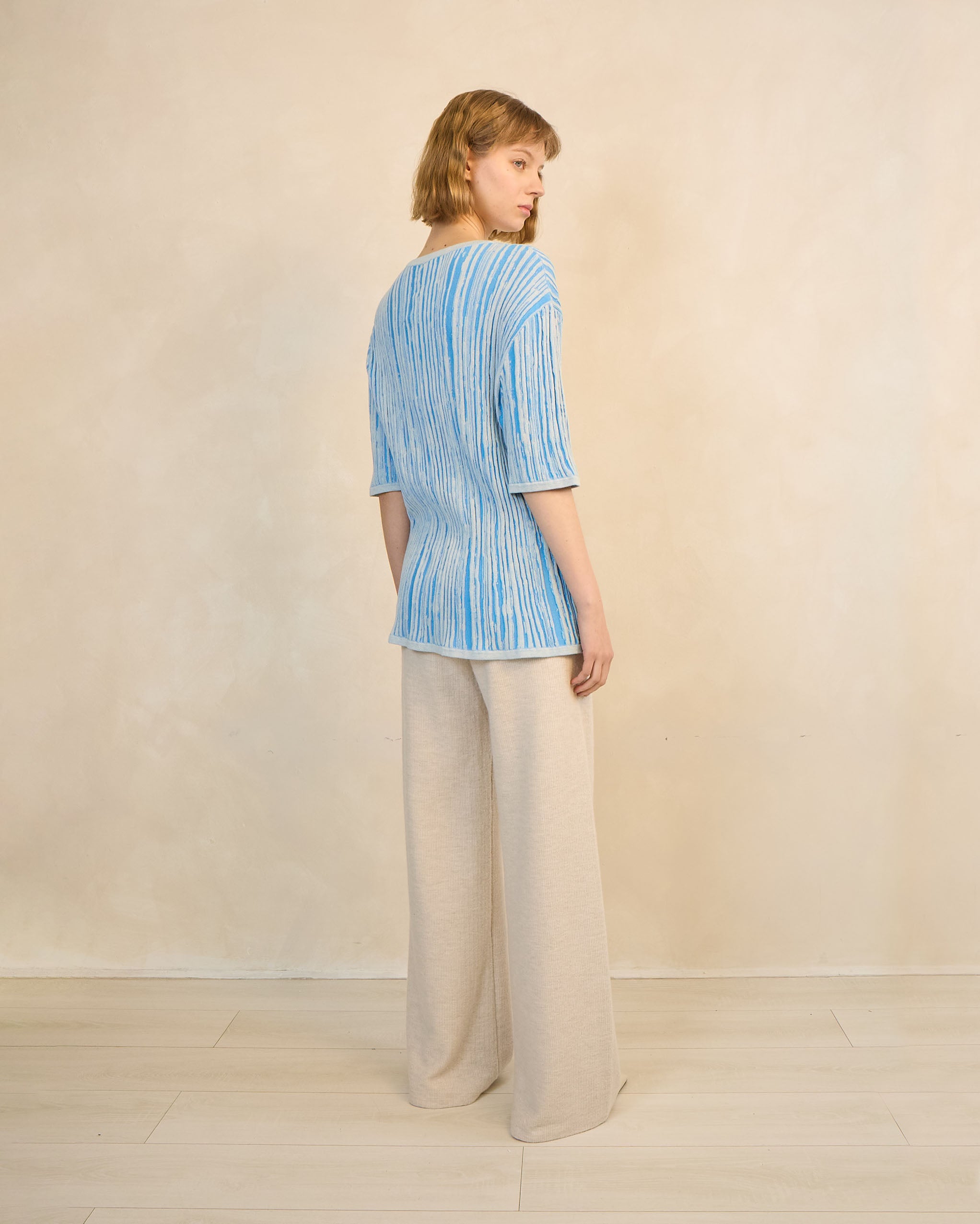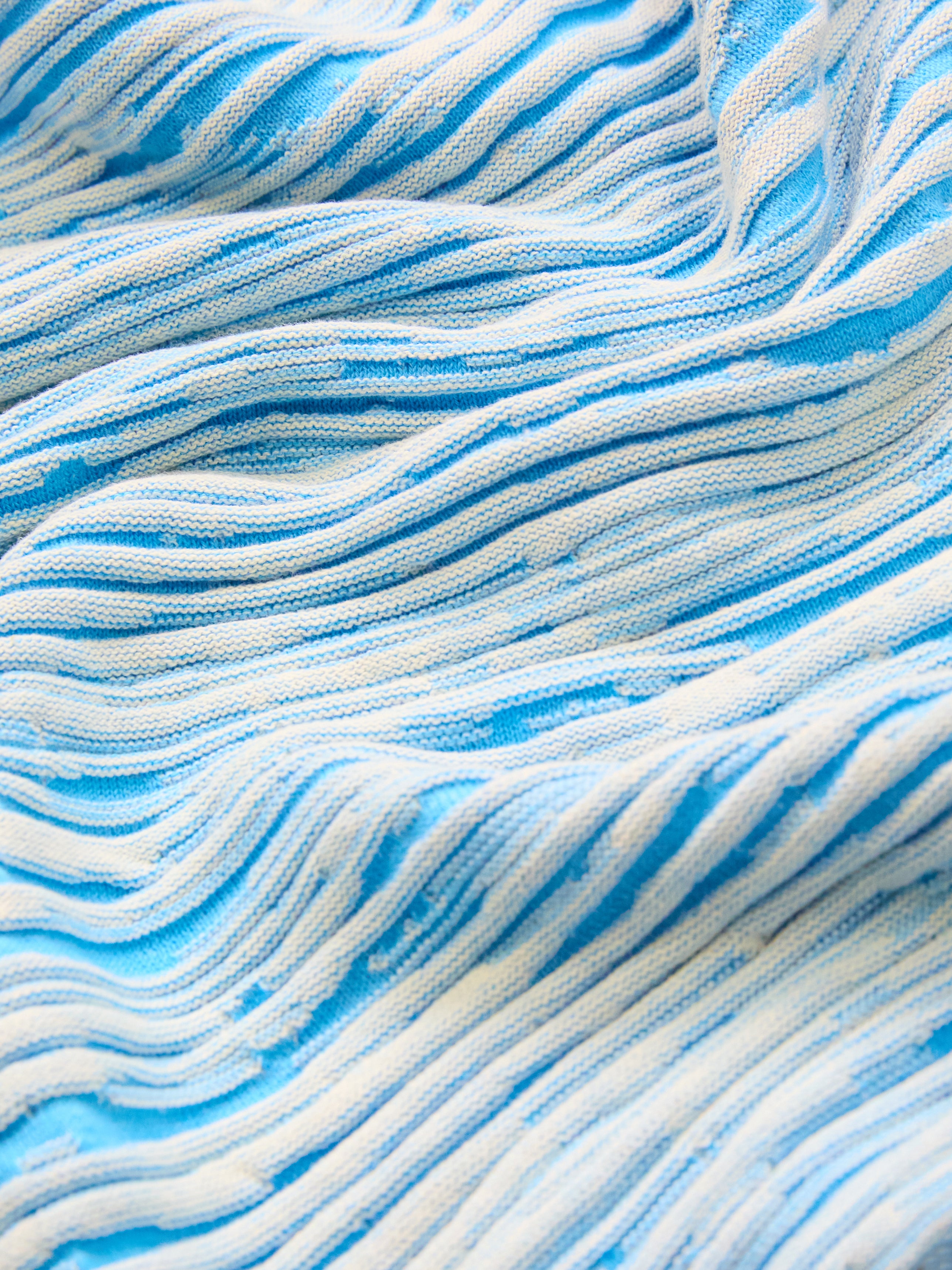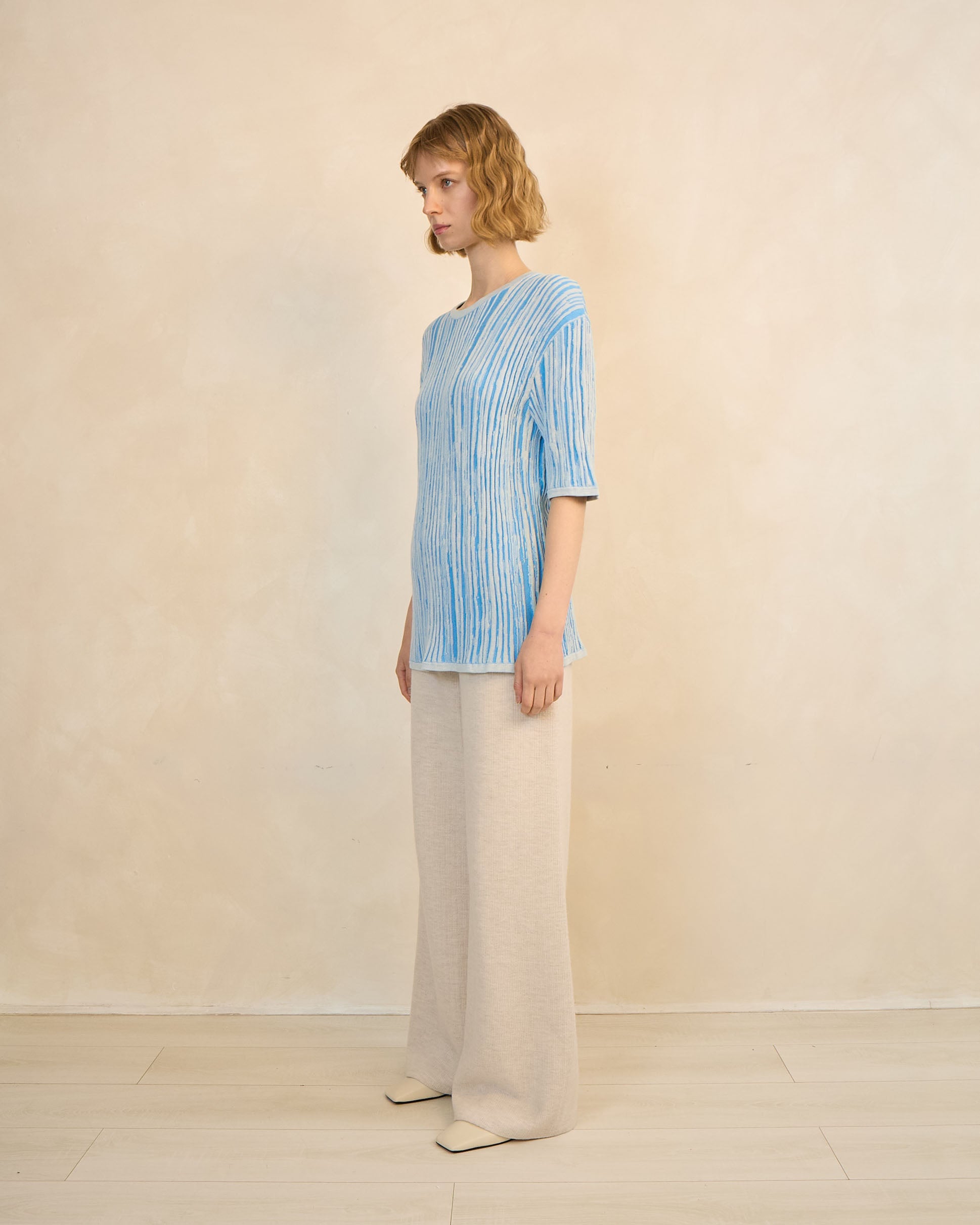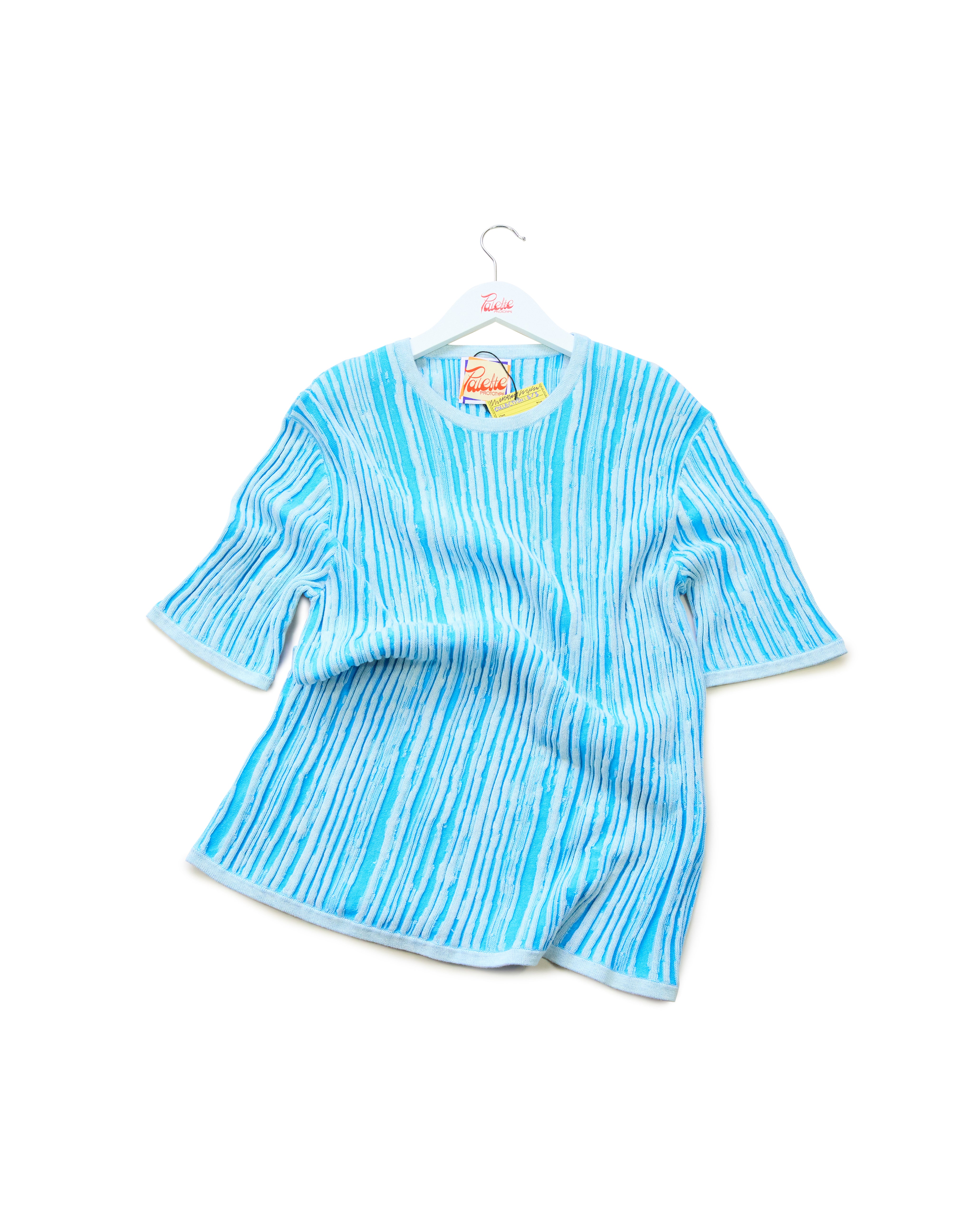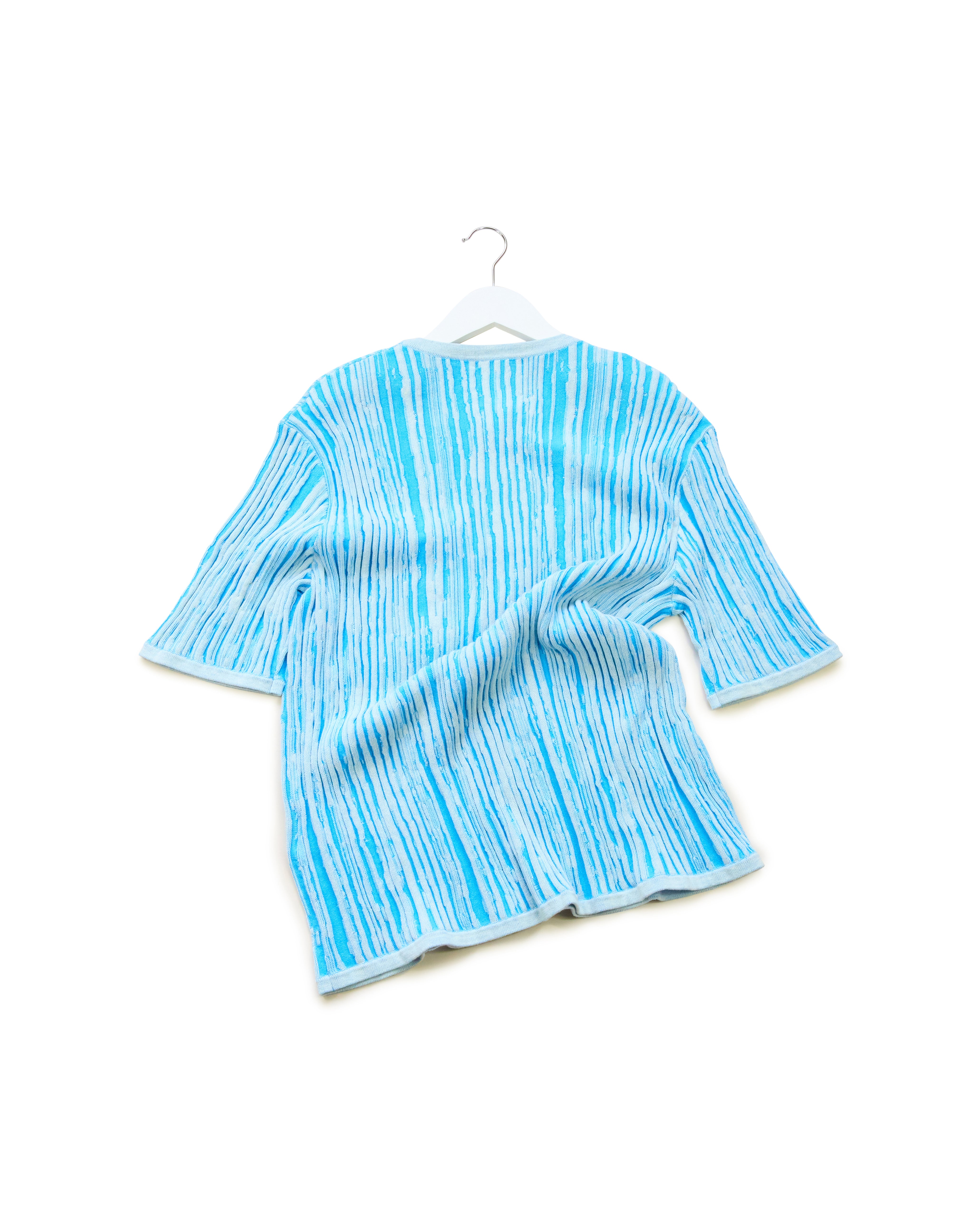 A Wearable Canvas of Memories - 3D Stripe Blue & White Knit Cotton T-Shirt