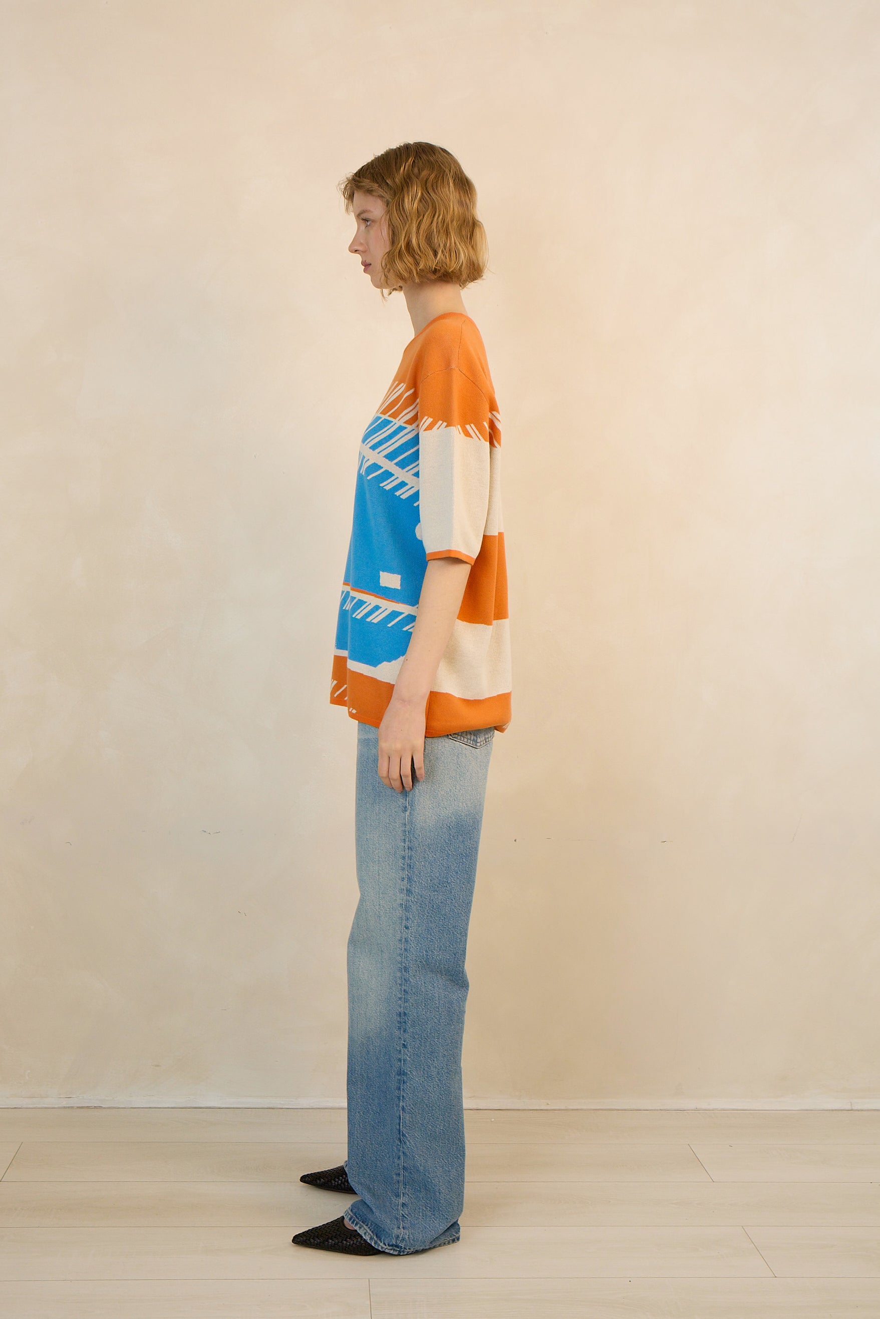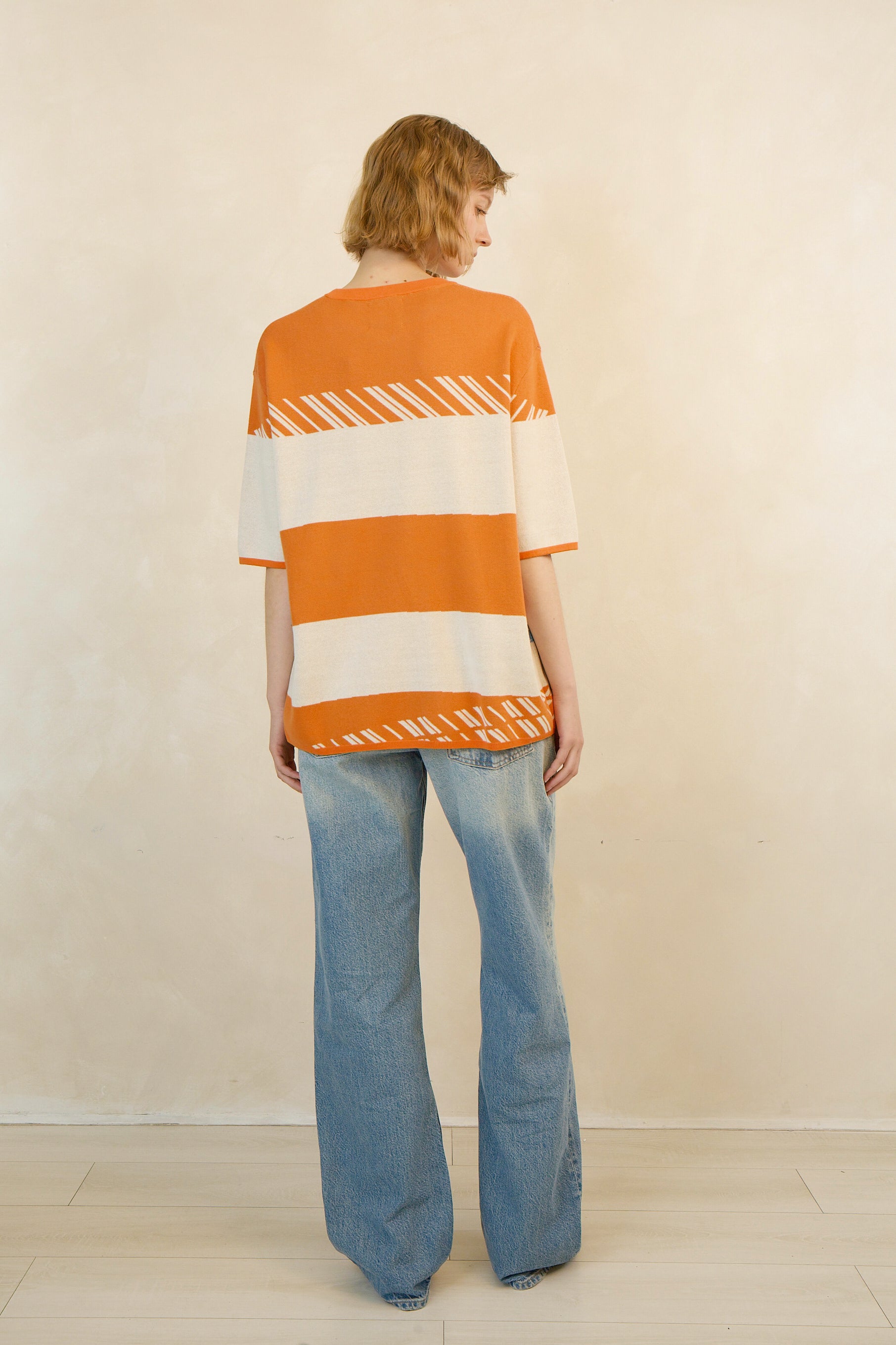 A Wearable Canvas of Memories - Seaside Holiday Orange Knit Cotton T-Shirt