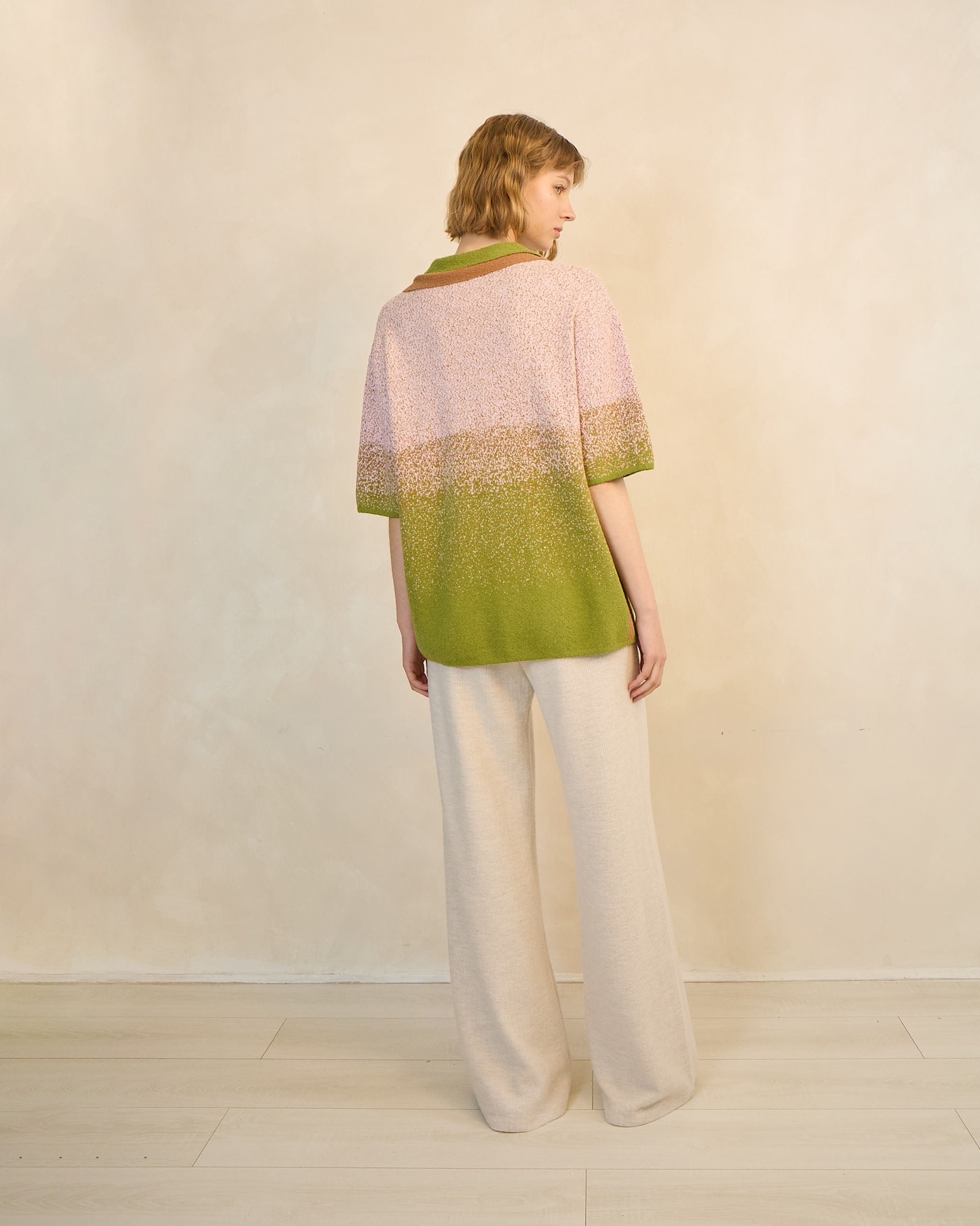 Engineered for Effortless Elegance: • Twin collar design blends tailored structure with casual ease • Lightweight cotton-cupro-silk blend drapes fluidly while providing subtle shape • Built-in stretch from nylon allows the garment to move naturally with your body • Breathable open-knit design resists clinging and enhances airflow • Smooth finish with a gentle sheen—thanks to the silk infusion