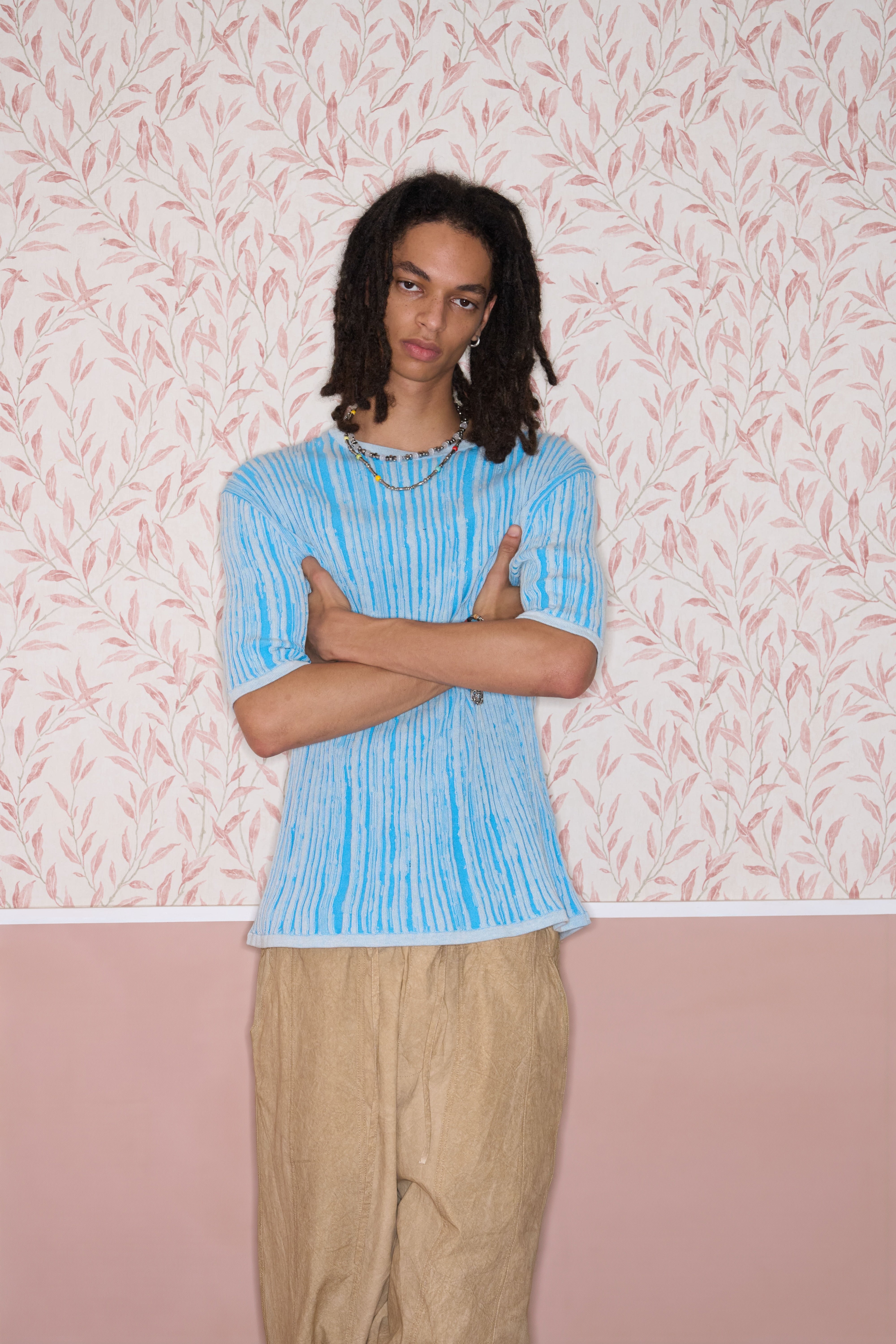 A Wearable Canvas of Memories - 3D Stripe Blue & White Knit Cotton T-Shirt
