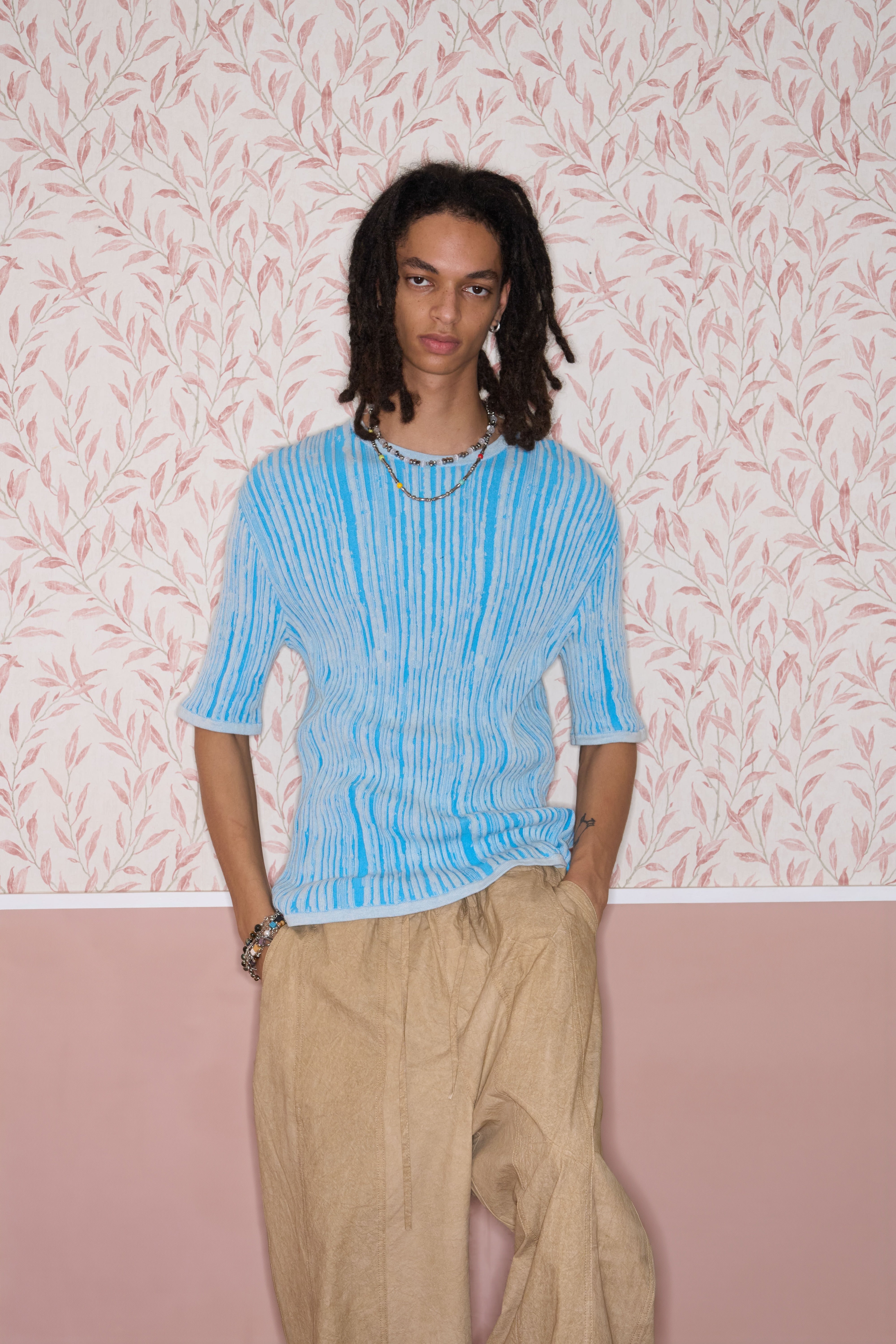 Each piece begins as a painted memory of journeys shared with loved ones, transformed into textile collages through our design process. Limited to fewer than 200 units per style (SS25 collection), these are heirloom-quality knits meant to be lived in.